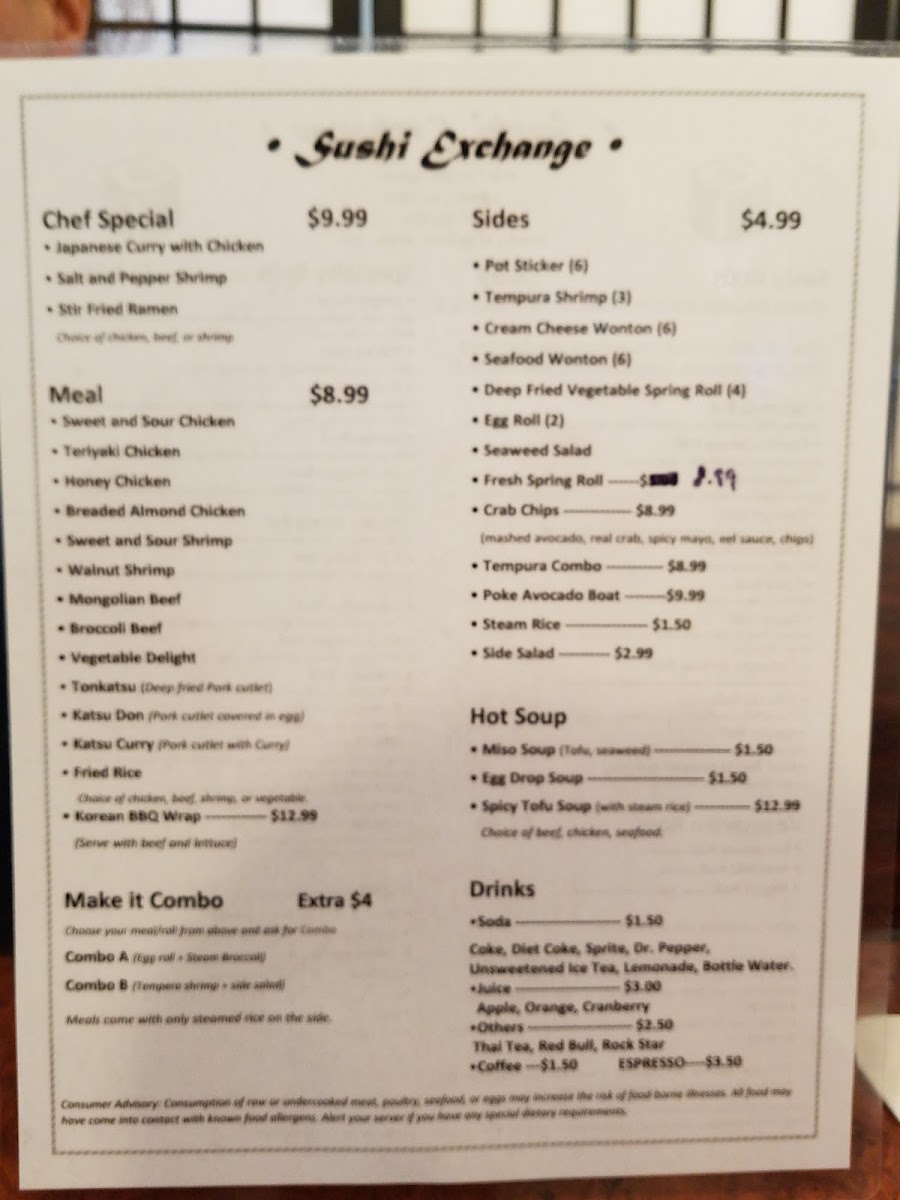 Customers rave about the generous portion sizes, consistent freshness, and unbeatable prices, making it a must-visit for sushi lovers. With a meticulously clean kitchen and friendly staff, it’s no wonder that patrons come from far and wide. Come experience what makes Sushi Exchange a local favorite!